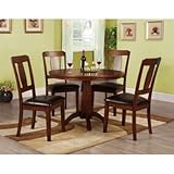 | ✚✚✚ Englewood 5 Piece Dining Set IDF-3123T 5PC SET Features: -Corner blocking for structural integrity.-Molded round table top solidly supported by tapered pedestal base.-Extra padded chair seat offer superior seating comfort.-ISTA 3A certified. Includes: -Set includes one dining table and four chairs. Options: -Chair upholstered in black color leatherette. Construction: -Frame construction: Solid wood and veneer. Color/Finish: -Vintage dark oak finish. Assembly Instructions: -Assembly required. Dimensions: -Dining table dimensions: 30'' H x 42'' W x 42'' D.-Chair dimensions: 39.75'' H x 22.88'' W x 19.25'' D.
