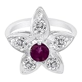 18K White Gold Ruby & Diamond Flower Design Ring (1 ctw) Size 9 1/2